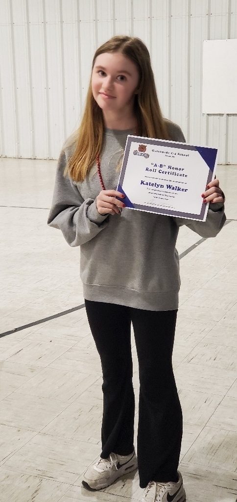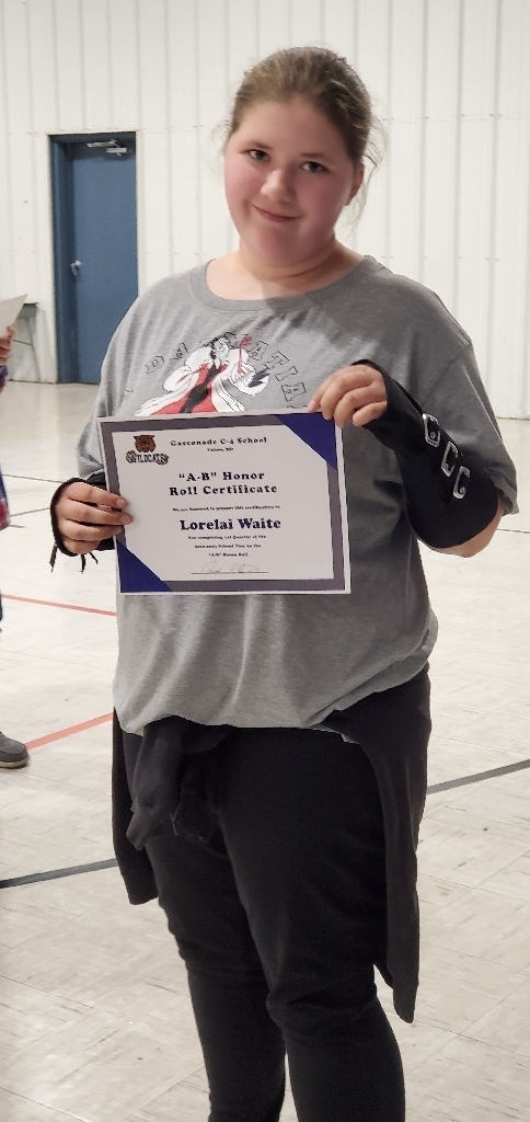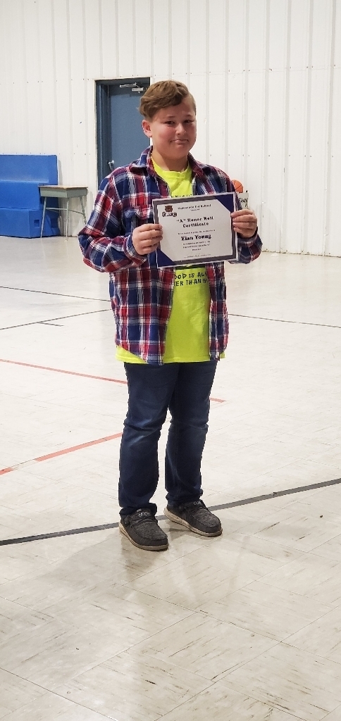Mr. O'Quinn gathered the middle school in the gymnasium this afternoon to award students who had made both the "A" Honor Roll and the "A/B" Honor Roll. In all, eleven students received a certificate as well as a soda and a candy bar.